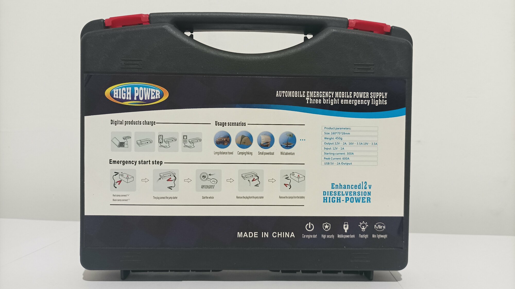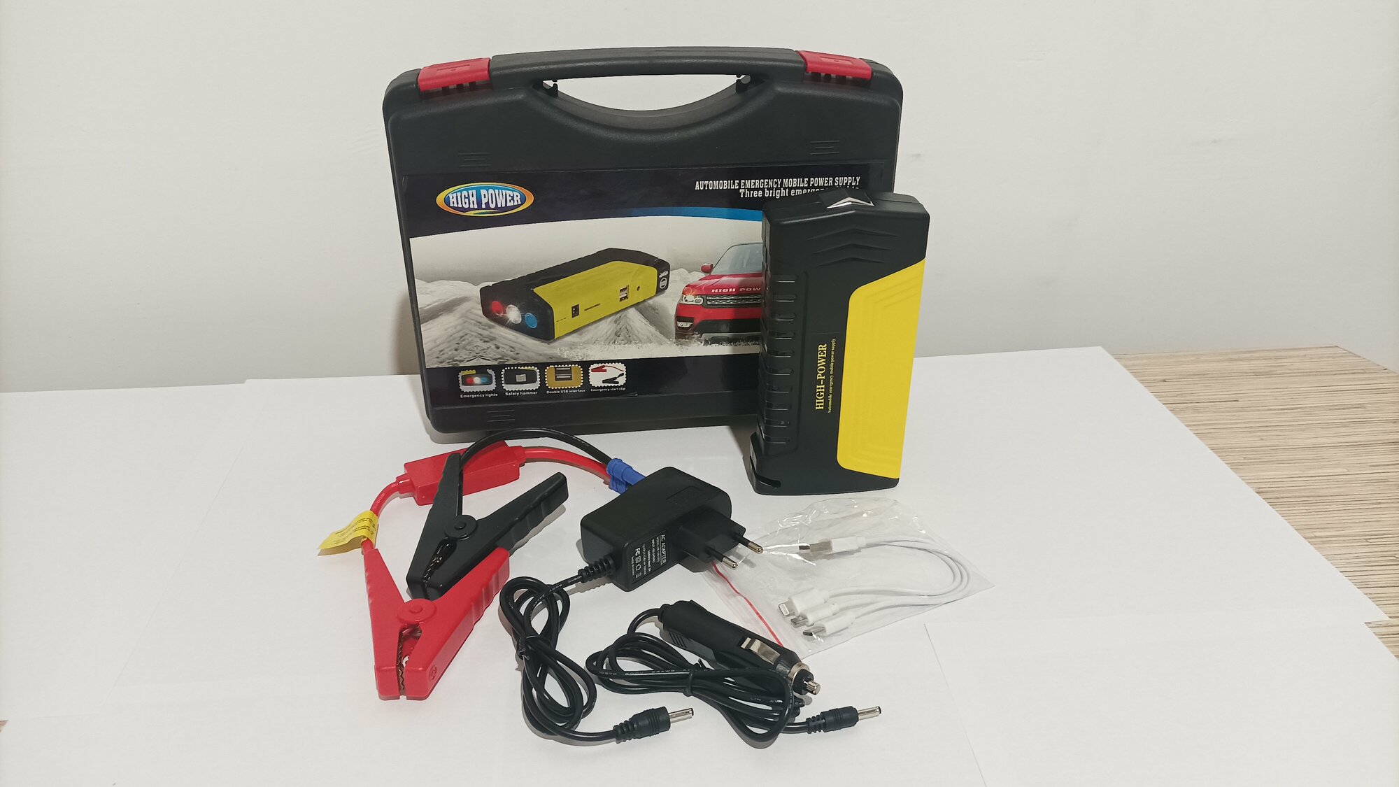 | Комплектация | Стартер скачка автомобиля (внешний аккумулятор) Зажимы для аккумулятора (красный = Положительный; Черный = отрицательный) Настенное зарядное устройство Автомобильное зарядное устройство 4 в 1 зарядный кабель Разъем для ноутбука Зарядный кабель для ноутбука |
