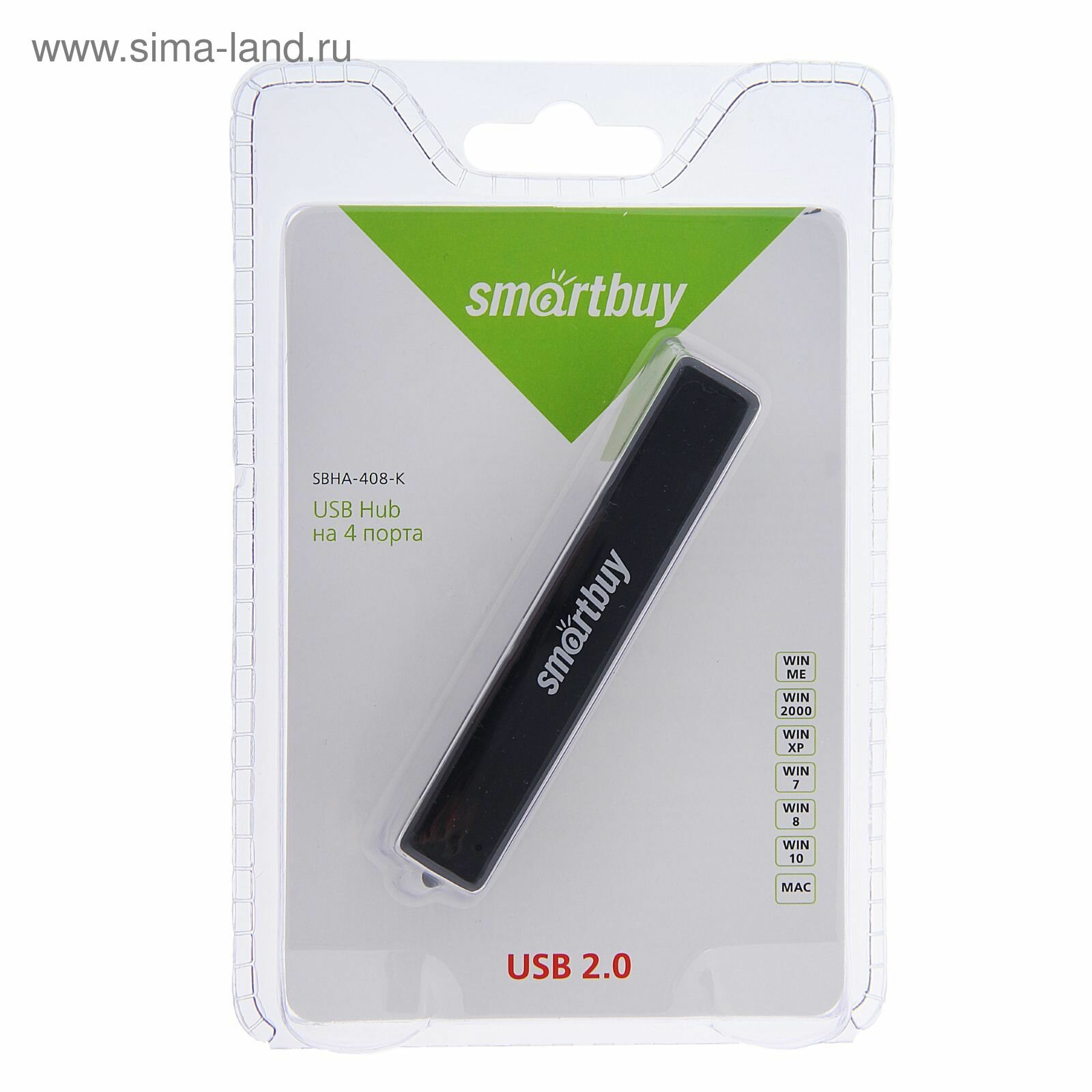 Купить USB HUB, хаб на 4 порта Smartbuy USB 2.0 (SBHA-408-K) черный
