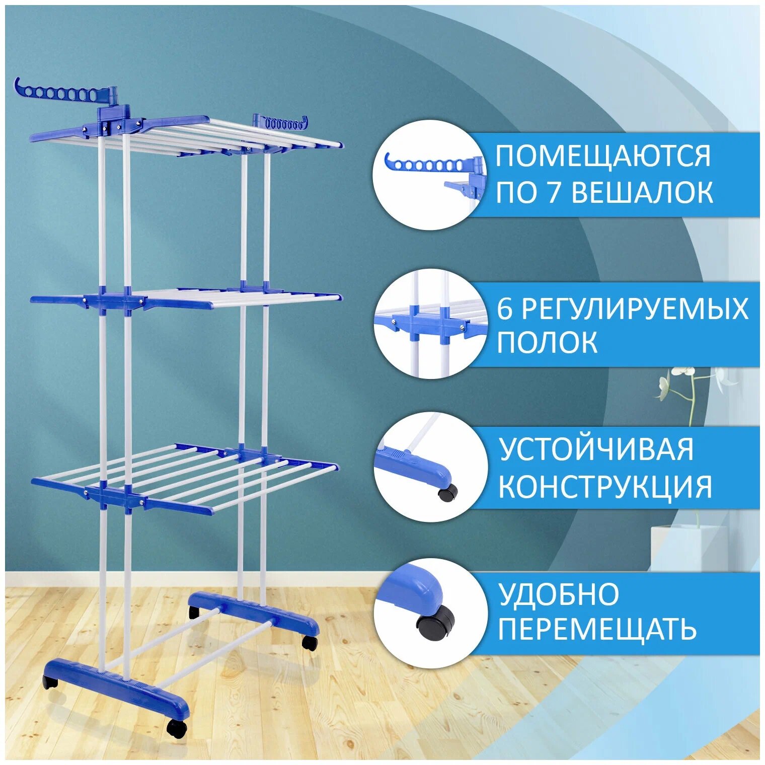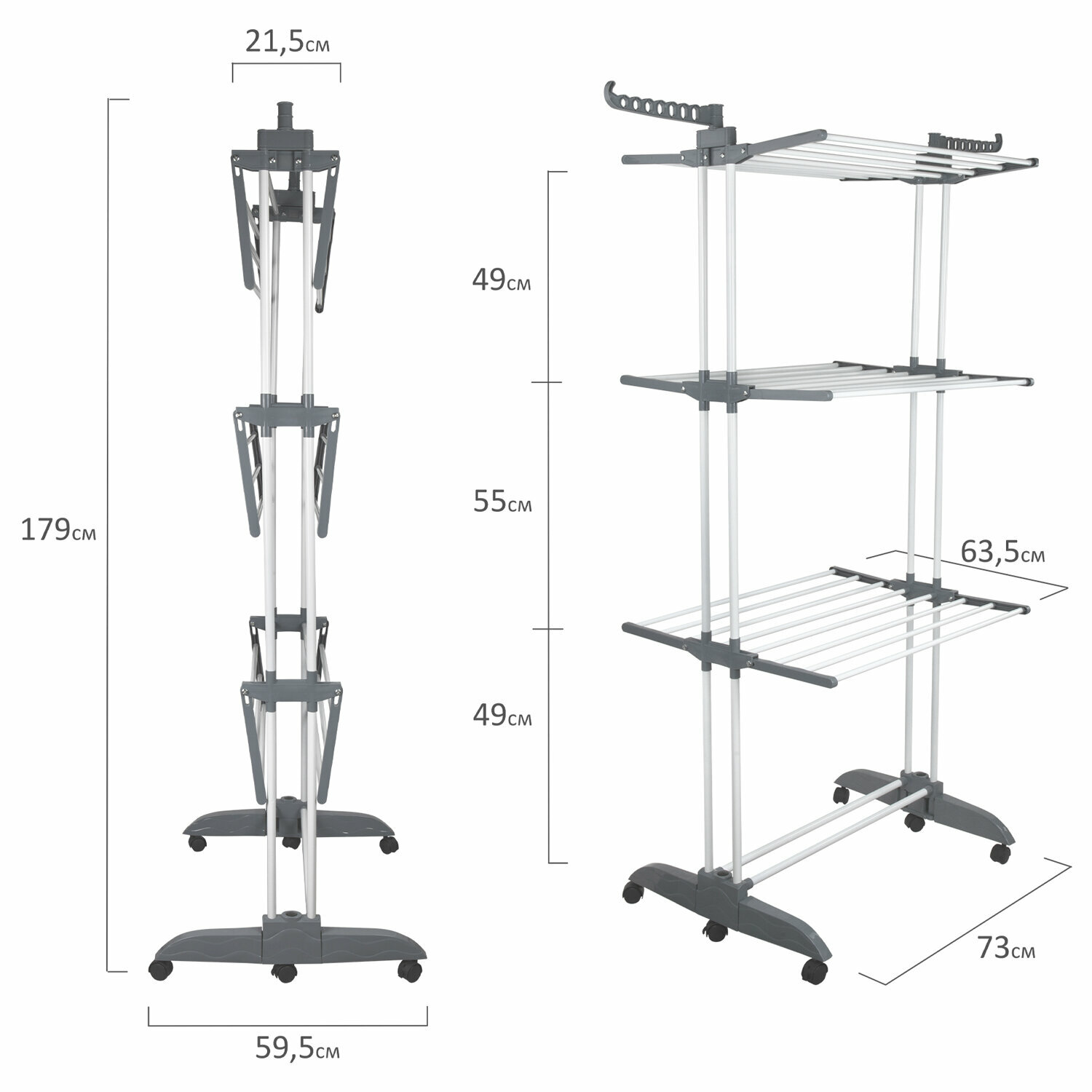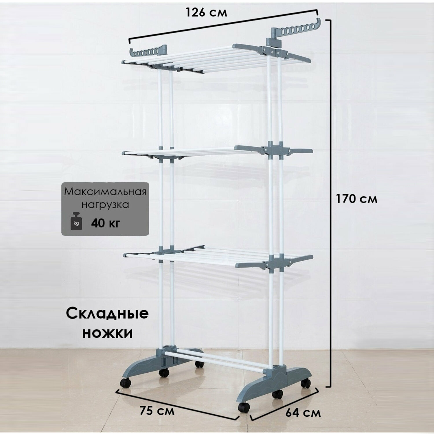 Сушилка напольная для белья раскладная многофункциональная, 3 уровня, на колесах, LAIMA HOME, 607807