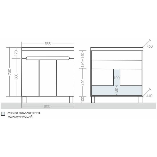 | Назначение | тумба для ванной комнаты / под раковину |