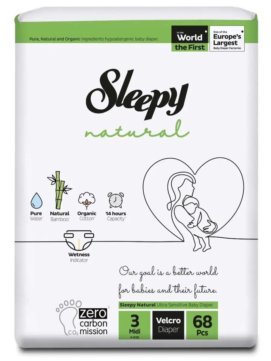 Sleepy подгузники Natural Ultra Sensitive 3 (4-9 кг), 68 шт.