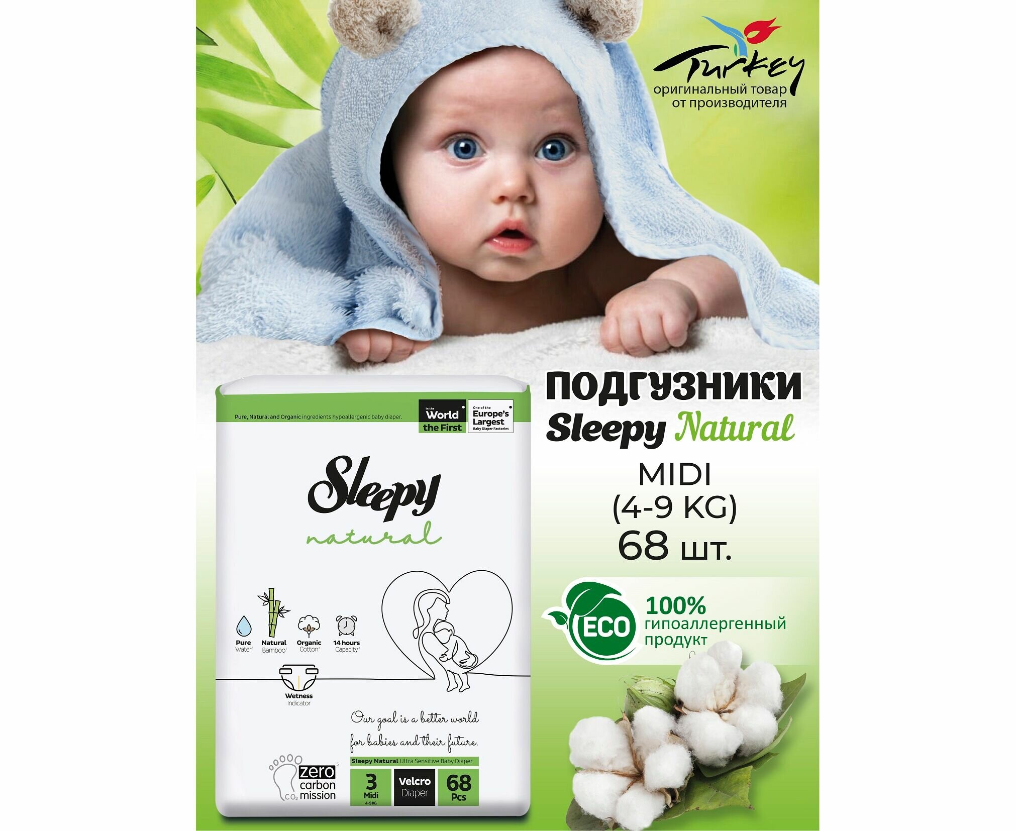 Подгузники детские Sleepy Natural р.3 (4-9 кг) 68 шт интересное: