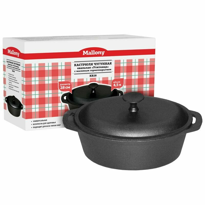 Кастрюля "утятница" чугунная Mallony KВ28 с масляным термопокрытием, овальная, 28 см, 3,9 л