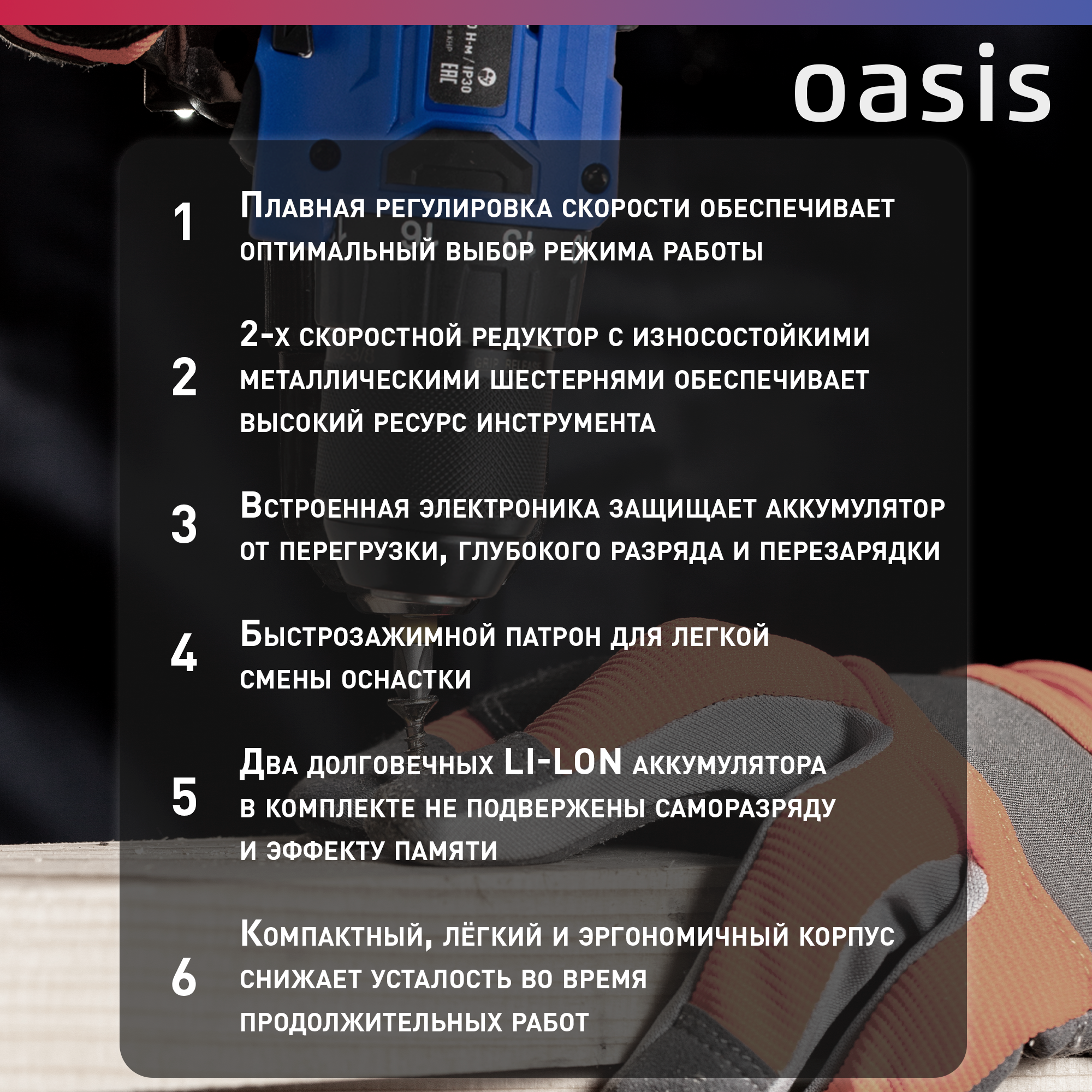 Шуруповерт аккумуляторный Oasis ASB 18V Pro (J) интересное: