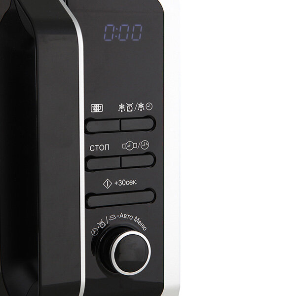 | Отзыв: | Дверца могла бы открываться с меньшим усилием - постоянно ждешь, что микроволновка сдвинется со своего места когда тянешь за ручку. На панели управления есть большая крутилка так она не нажимается а просто служит для установки мощности или времени. На мой взгляд она не удобная и только мешается, логично было сделать большую кнопку 30 сек. (старт) и две маленькие "+", "-" |
