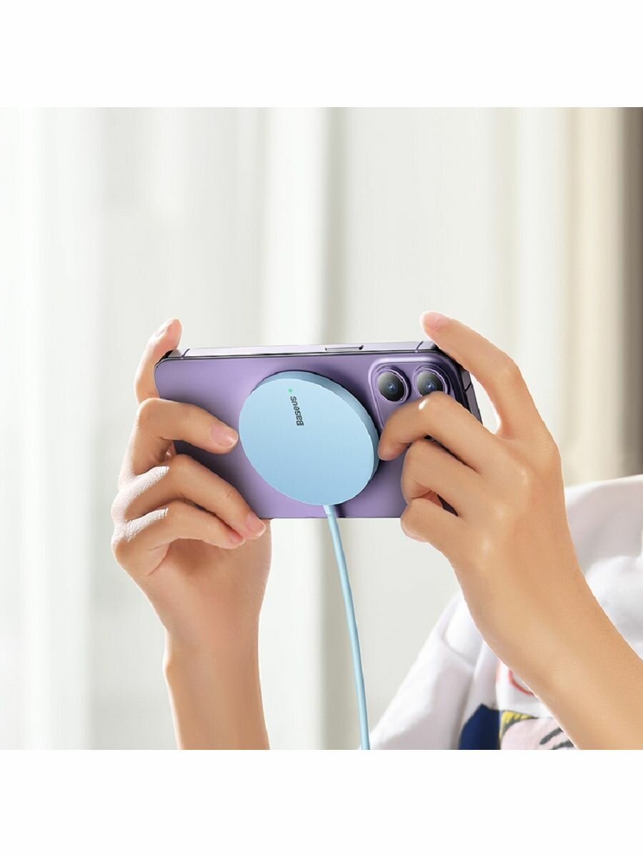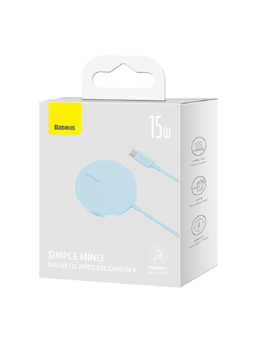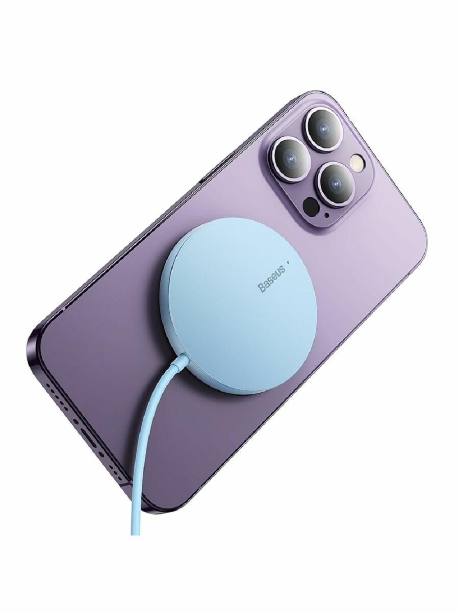 Беспроводное зарядное устройство BASEUS Simple Mini3 Magnetic Wireless Charger, 2A, 15W (CCJJ040303) голубой