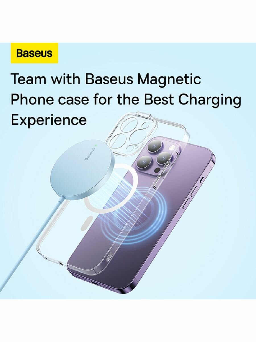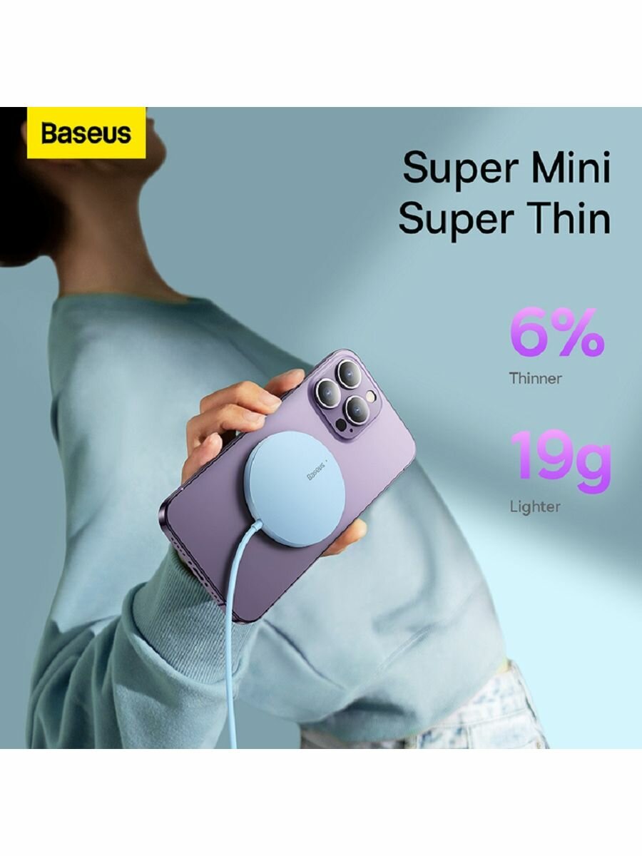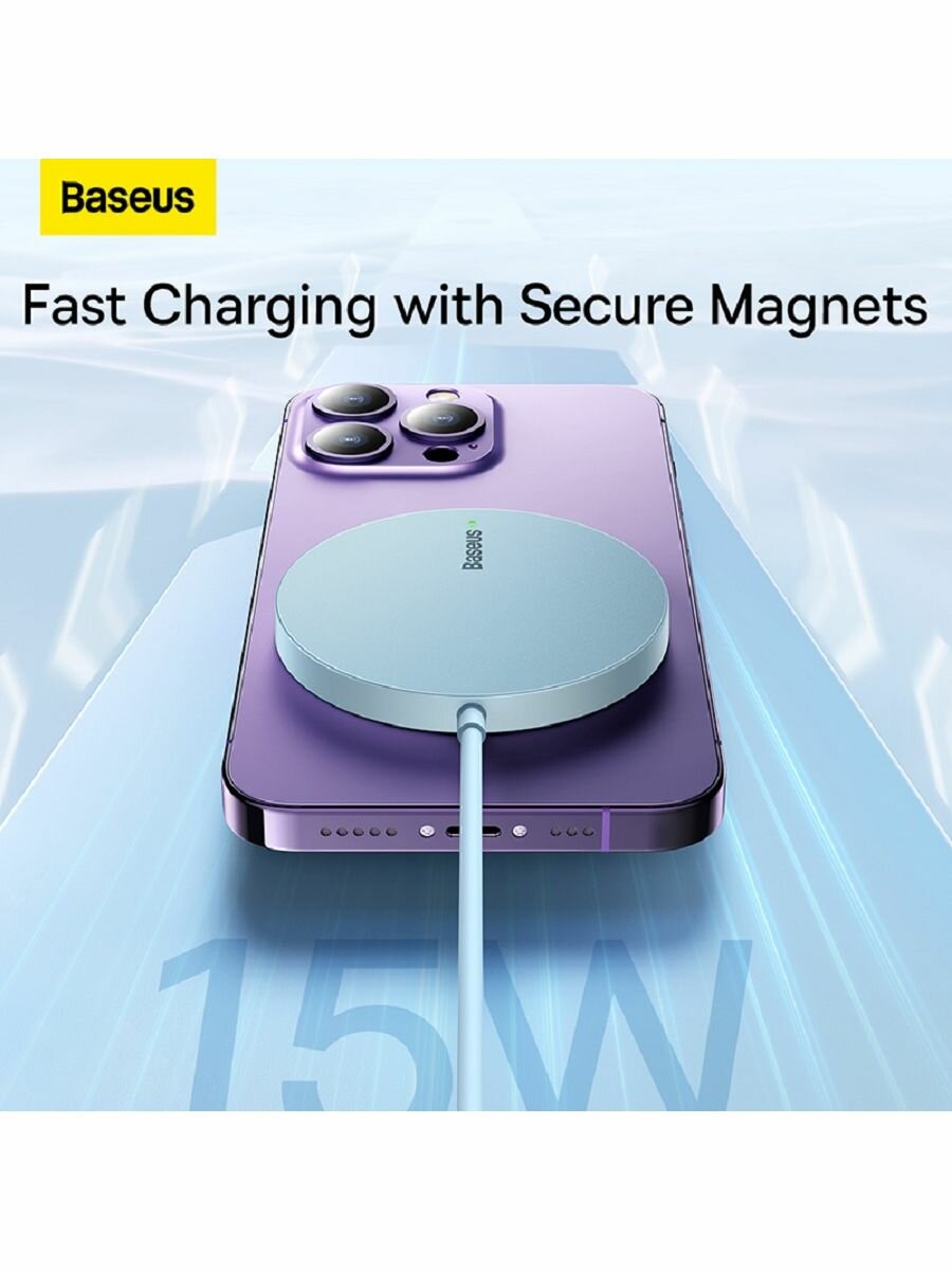 Беспроводное зарядное устройство BASEUS Simple Mini3 Magnetic Wireless Charger, 2A, 15W (CCJJ040303) голубой