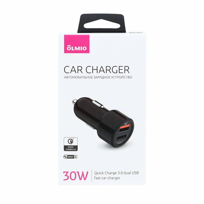 Зарядное устройство автомобильное Olmio Smart IC, 2 USB, 30 Вт, 5,4 А, QuickCharge3.0