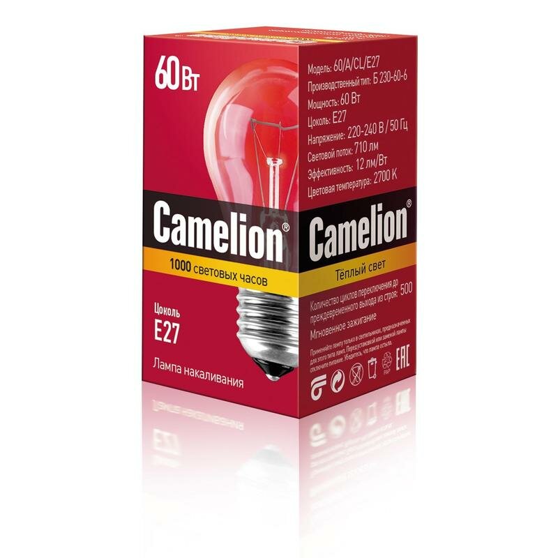 Camelion 60/A/CL/E27 (Эл.лампа накал. "Груша" Теплый свет с прозрачной колбой)