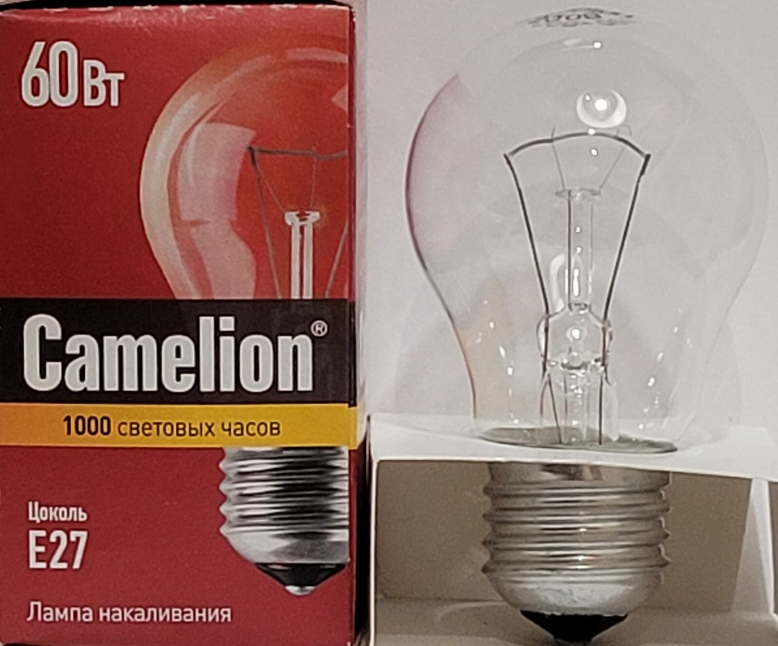 Лампа накаливания Camelion 7277, E27, A60, 60 Вт, 2700 К
