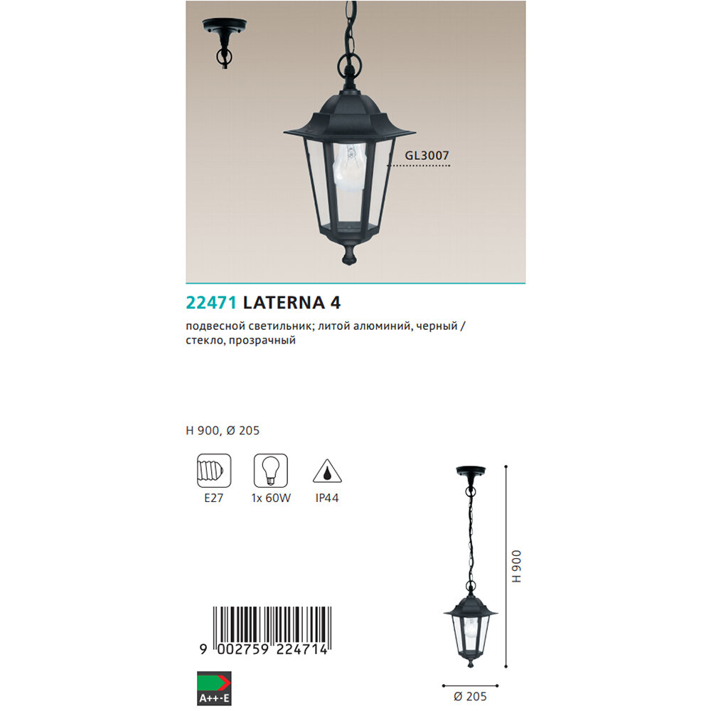 22471 Уличный светильник подвесной EGLO LATERNA 4