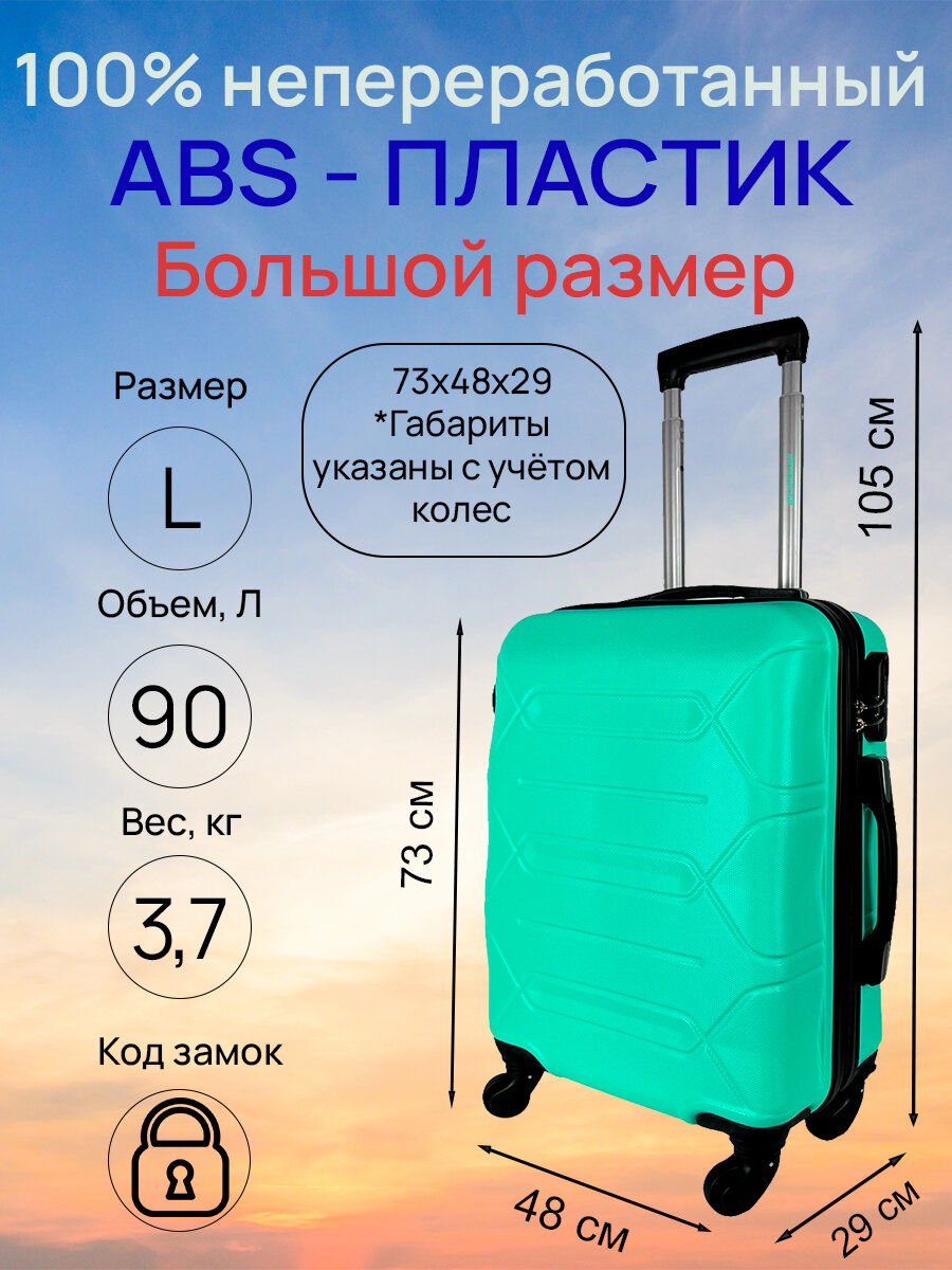 Купить Чемодан, большой размер (L) 90 литров, Габариты: 73x48x29, кодовый замок, 4 колеса, Цвет: Мятный