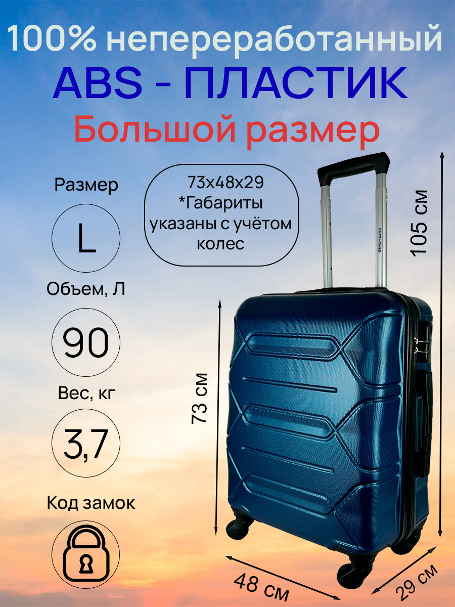 Купить Чемодан, большой размер (L) 90 литров, Габариты: 73x48x29, кодовый замок, 4 колеса, Цвет: Синий
