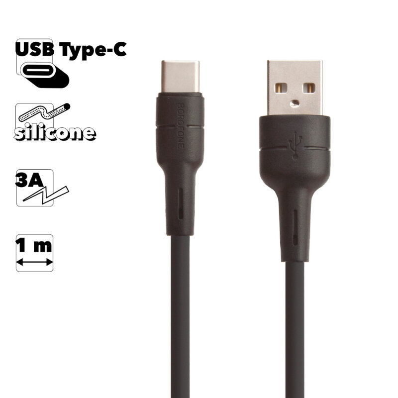 Кабель BOROFONE BX30 Silicone, USB - USB Type-C, 3A, 1м, черный