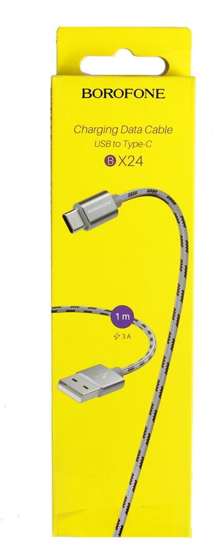 Кабель USB BOROFONE BX24 для Type-C, 3.0А, длина 1м, серый