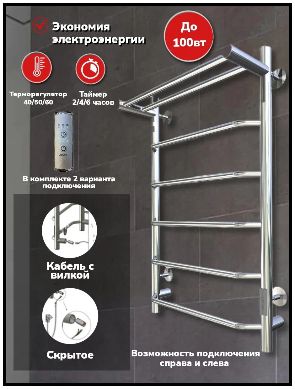 Стандарт с полкой полотенцесушитель электрический 500х800 мм /7п/, хром, с терморегулятором, TermoSmart / ТермоСмарт, производство Россия