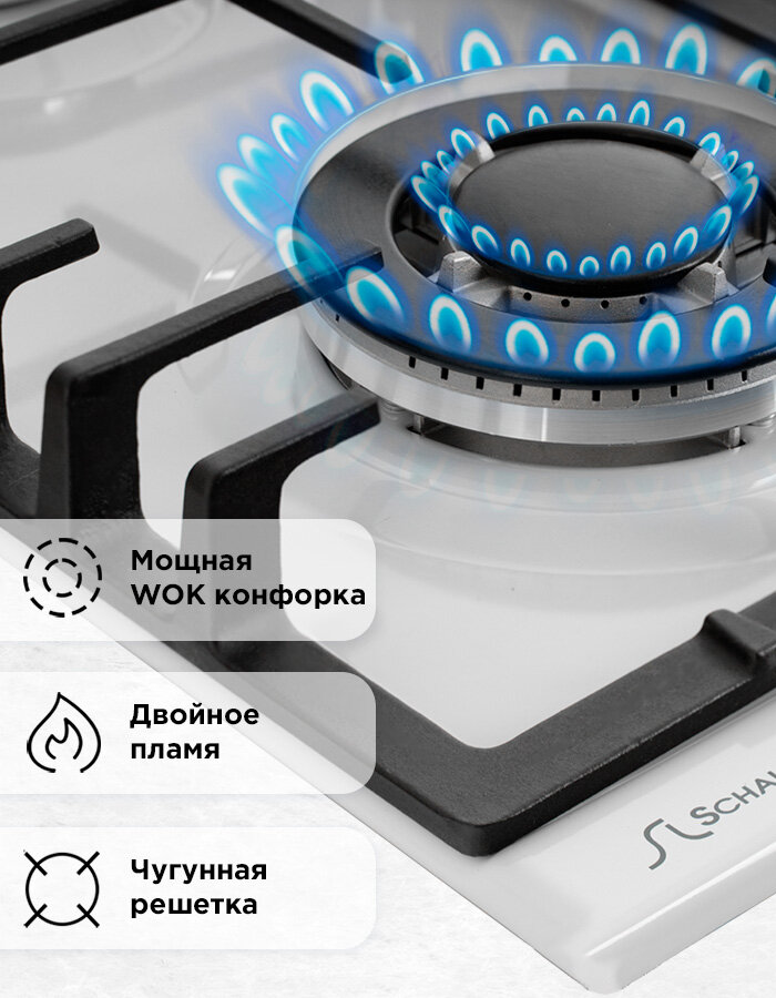 Варочная панель газовая Schaub Lorenz SLK GW6521 с газ-контролем, 60 см, электроподжиг, WOK