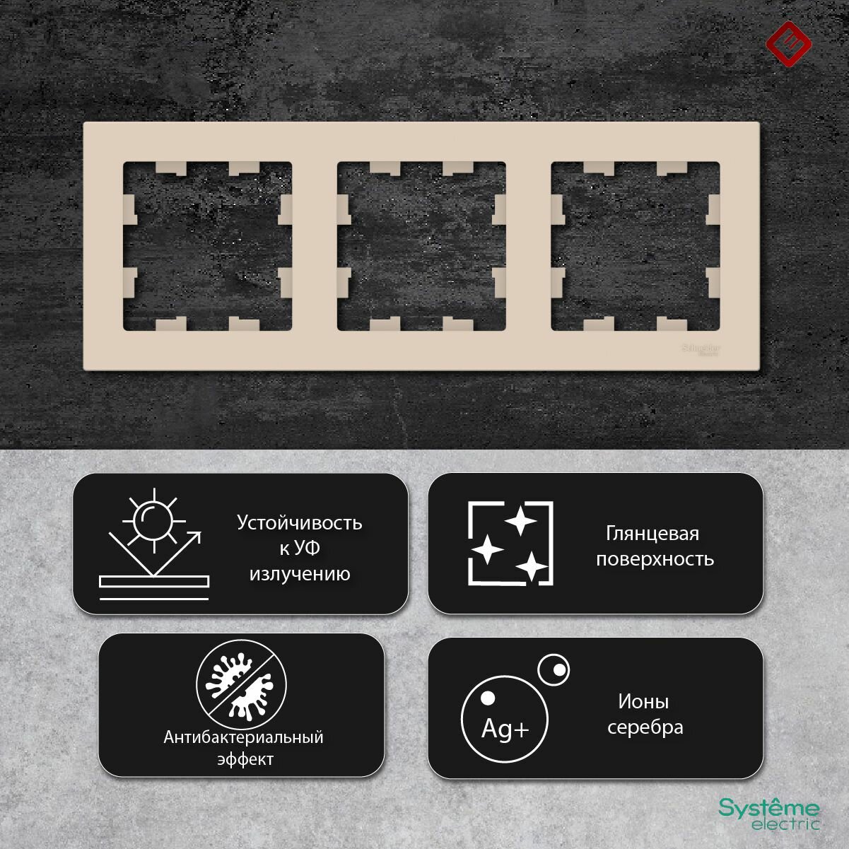 Рамка Systeme Electric Atlas Design тройная для розеток и выключателей бежевый - 4 шт.