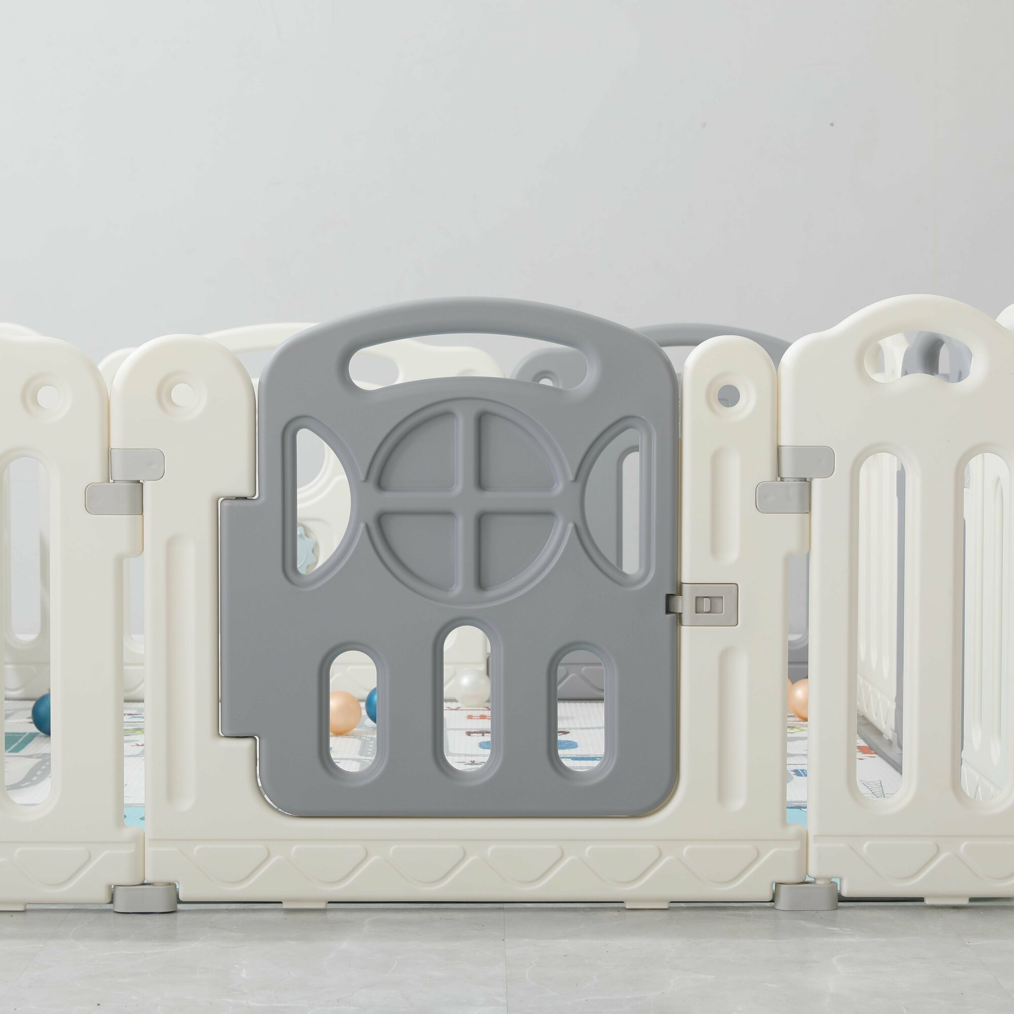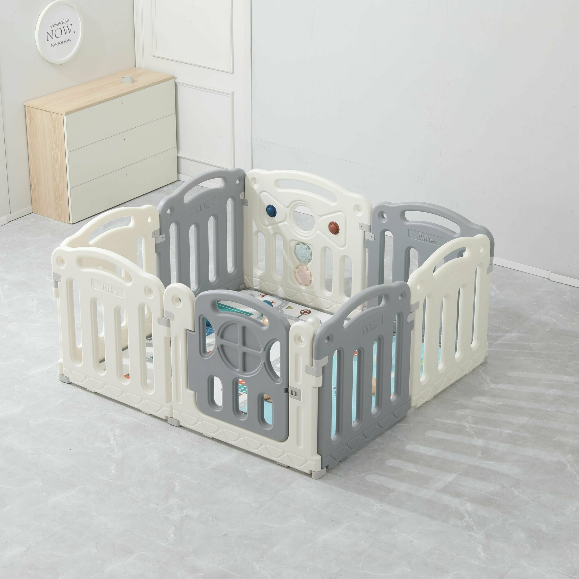 Манеж UNIX Kids "Classic" Grey, серый/белый, 126x120 см, детский игровой манеж из пластика с ковриком для дома и улицы, для мальчиков, для девочек