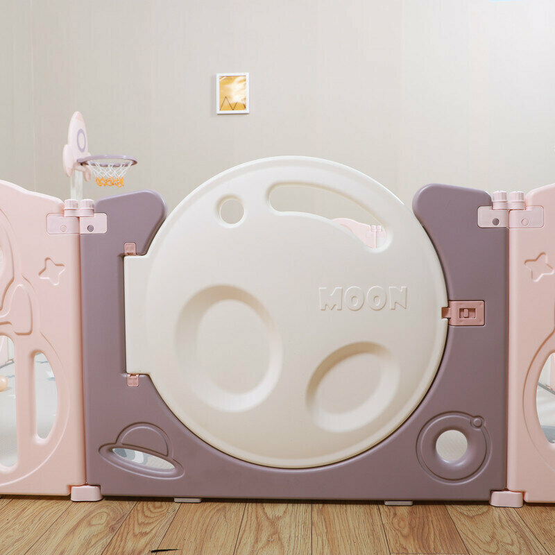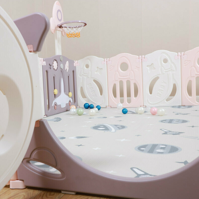 Манеж UNIX Kids "SUPREME Space" Rose, розовый/белый, 200x240 см, с ковриком, горкой и баскетбольным кольцом для дома и улицы