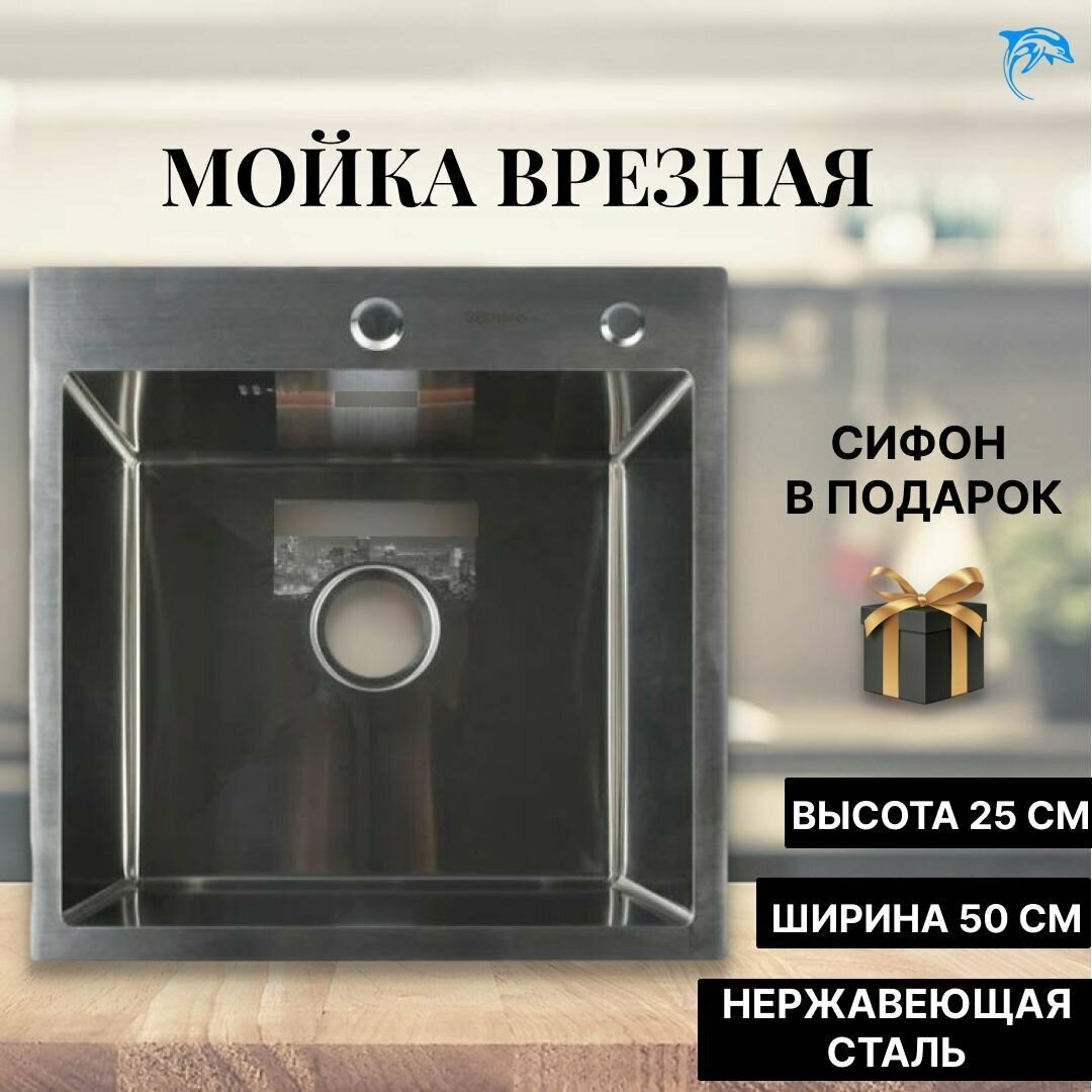 Мойка Gerhans врезная 50х50 см толщина 1,0мм, глубина 220мм + сифон цвет графит RK35050B