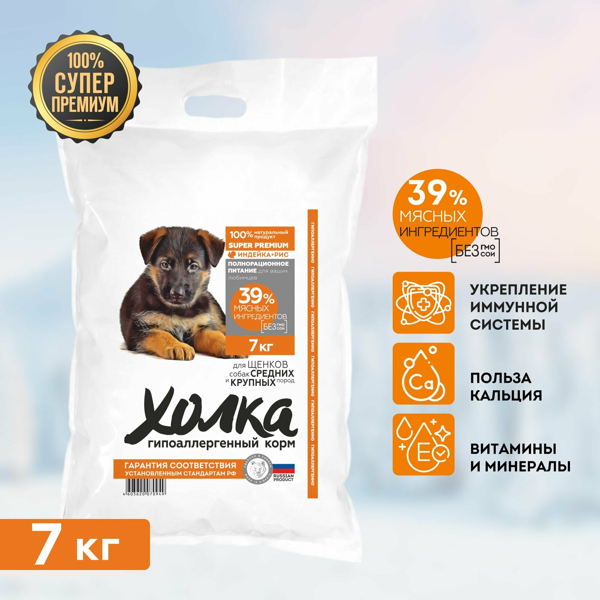 Холка гипоаллергенный сухой корм для щенков средних и крупных пород с индейкой и рисом - 7 кг