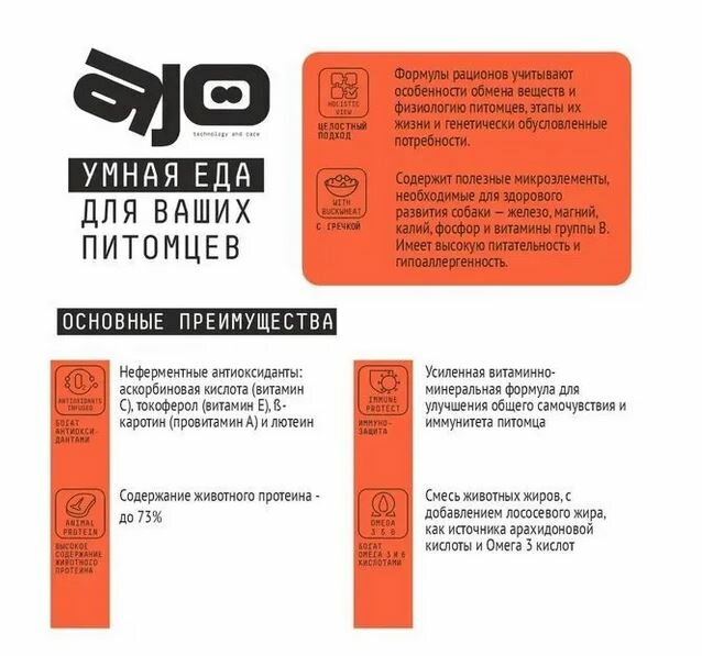 Сухой корм для щенков средних и крупных пород AJO с гречкой 12 кг