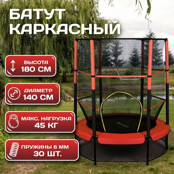 ONLYTOP Батут ONLYTOP, d=140 см, высота сетки 145 см, цвет красный интересное: