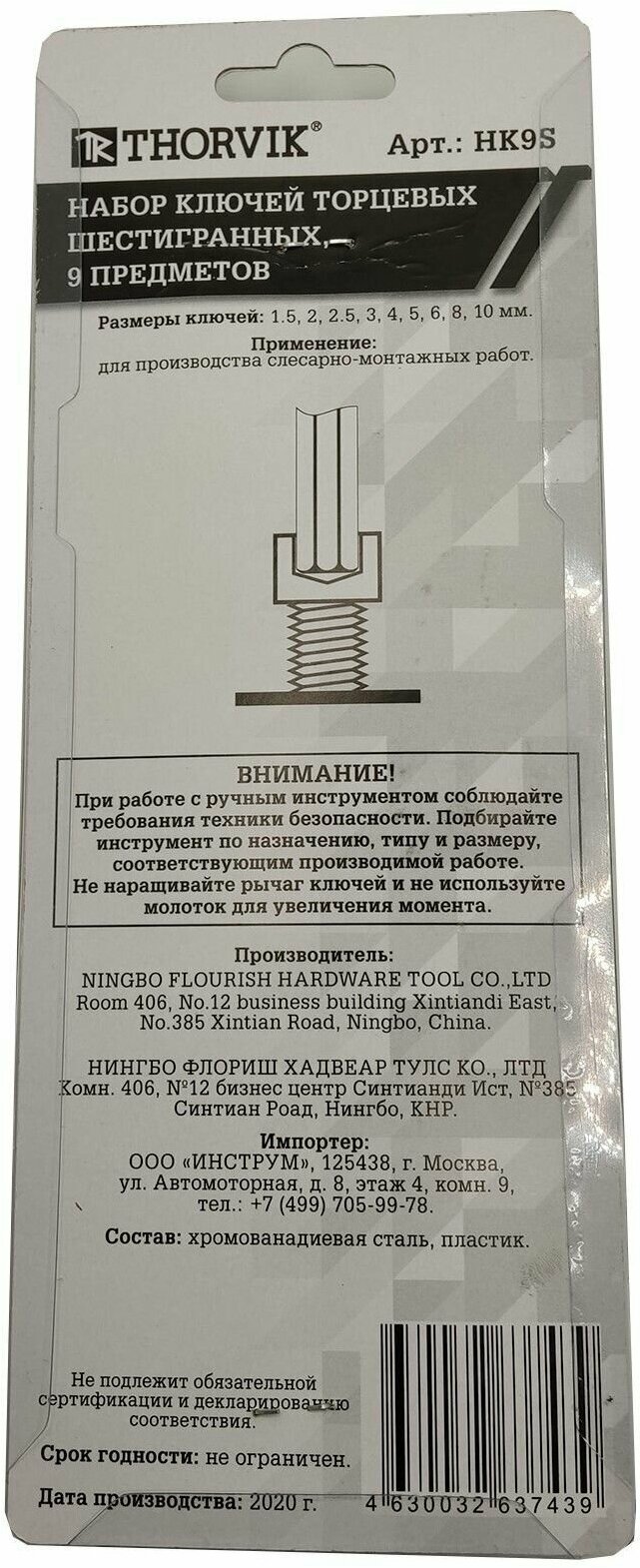 СохранитьTHORVIK HK9S oem набор ключей торцевых шестигранных, h1.5-h10, 9 предметов интересное: