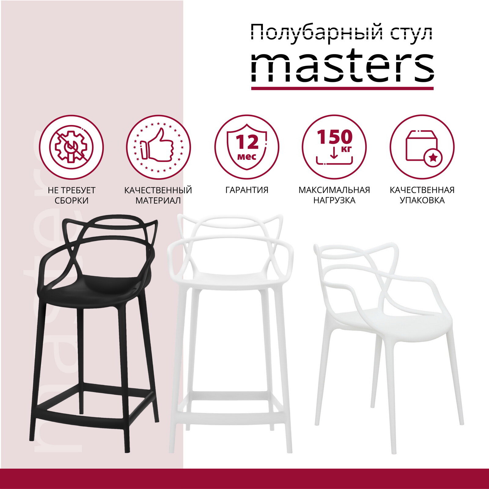 Комплект из 2-х стульев полубарных Masters чёрный / Стулья пластиковые / Барный стул / Стул кухонный / Стулья для бара / Мебель для дачи и сада