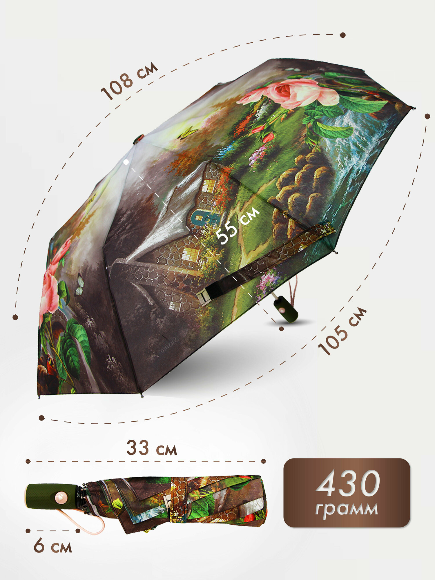СохранитьЗонт женский полуавтомат, зонтик взрослый складной антиветер 2044, заленый,каштановый интересное: