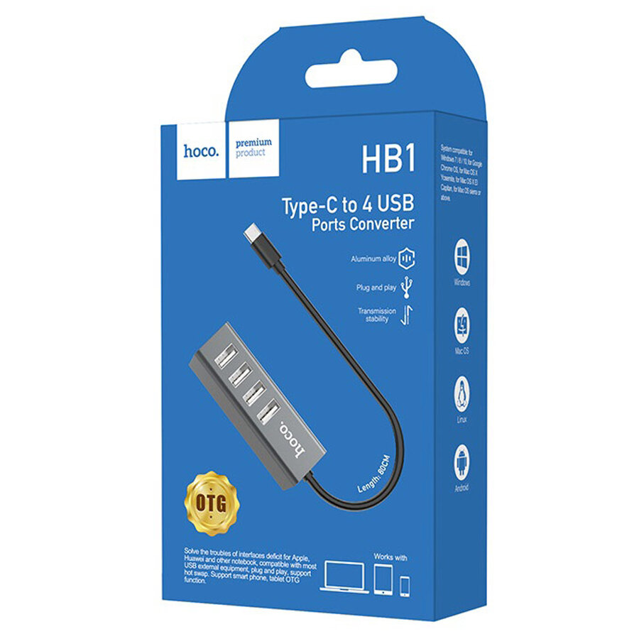 Купить Хаб USB Hoco HB1 USB-4USB, 80cm, серый, 1 шт.