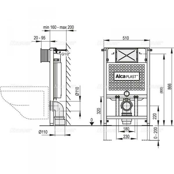 Alcaplast AM101 Sadroмodul - Скрытая система инсталляции для сухой установки высота монтажа 0,85м AM101/850-0001