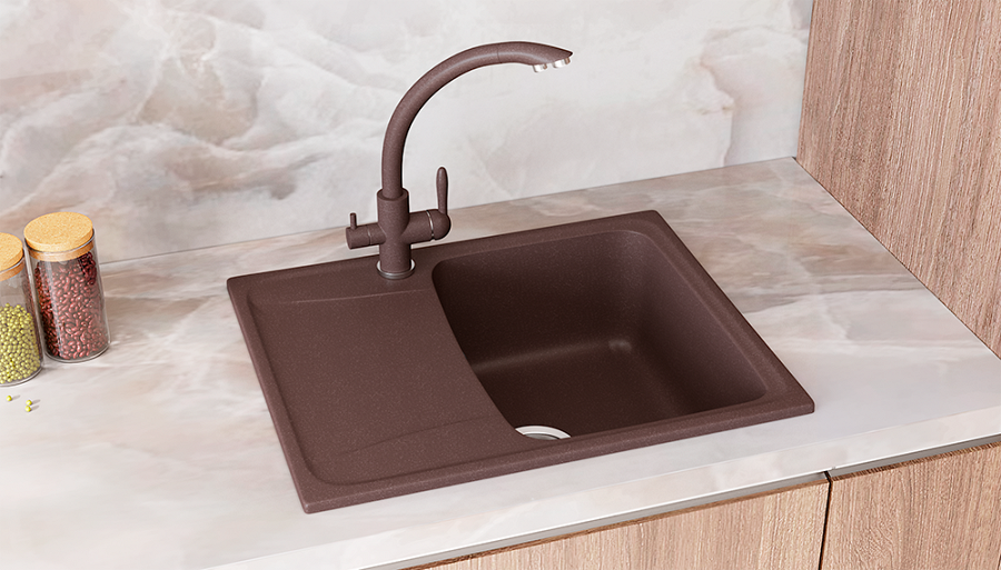 Мойка кухонная Ulgran из искусственного мрамора прямоугольная U-201, цвет: шоколад, база: 55.5х46.5 см, арт. U-201-345