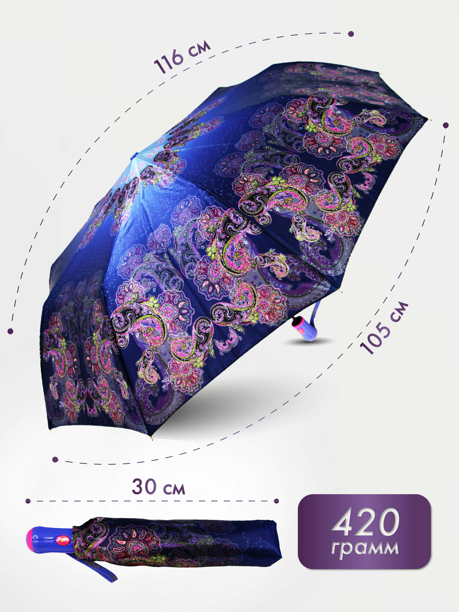 | Дополнительная информация | Комплектация: зонт 1шт, чехол 1шт, прозрачный пакет 1шт. |