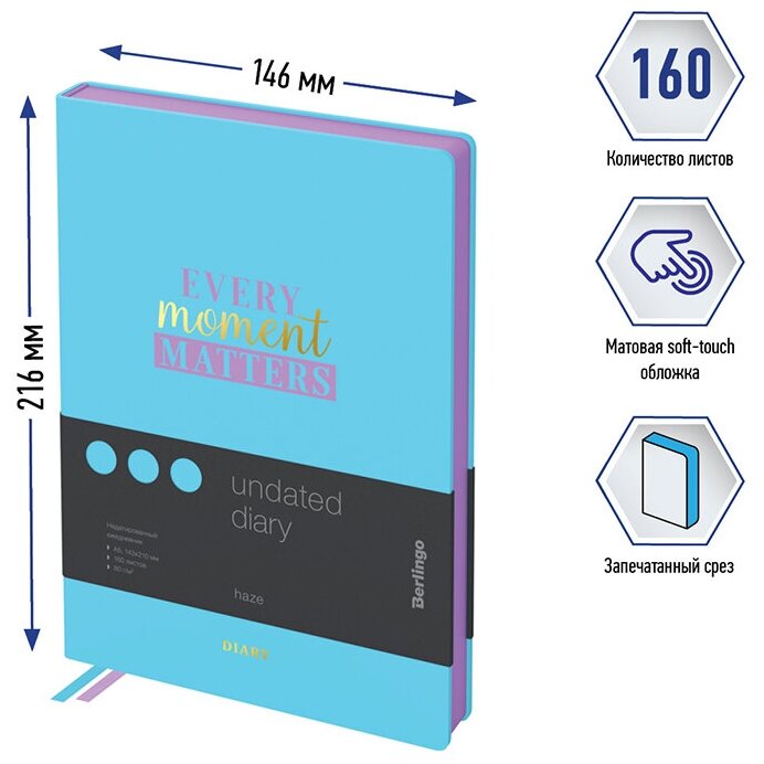 Купить Ежедневник Berlingo Haze недатированный на 2022-2023 год, искусственная кожа, А5, 160 листов, голубой, цвет бумаги тонированный