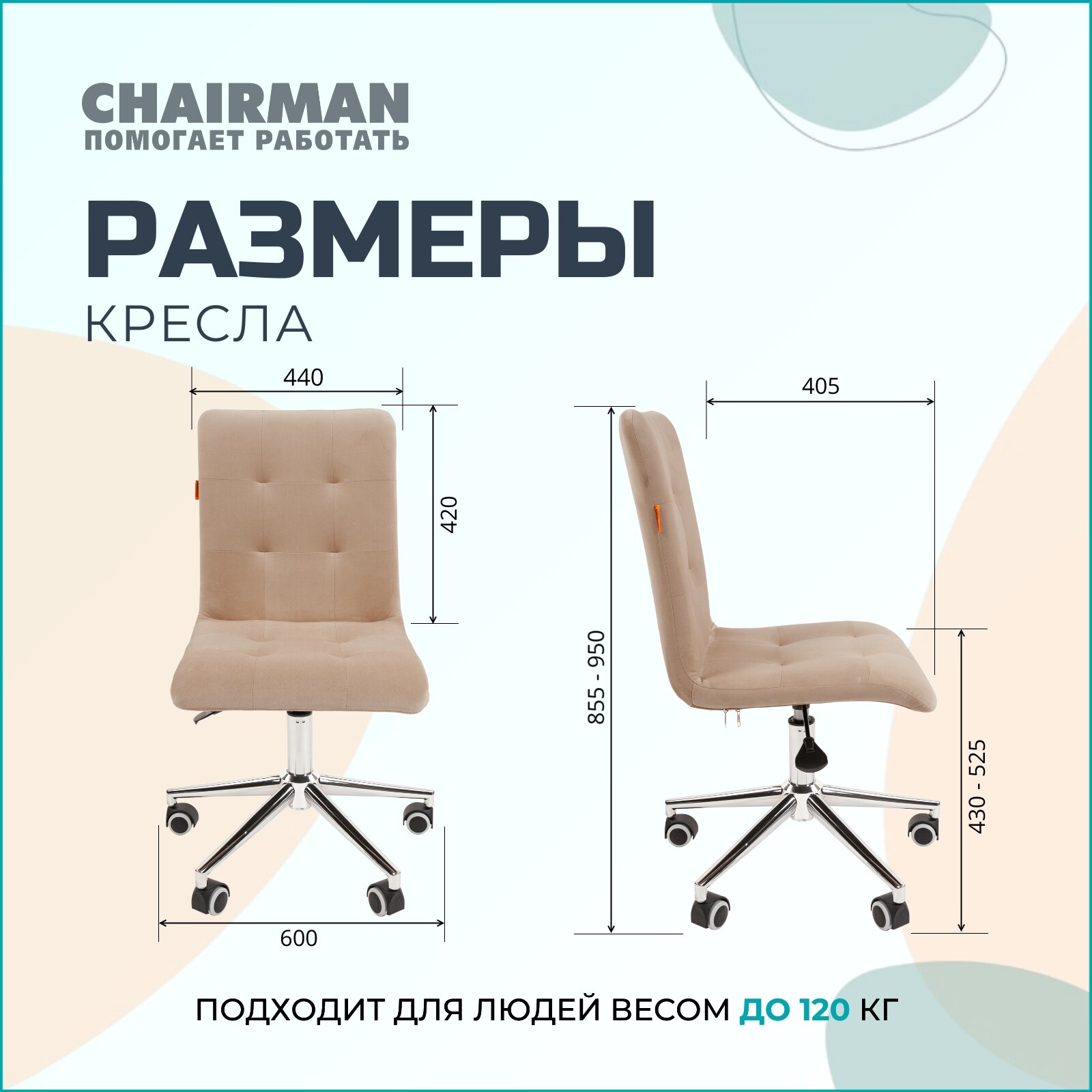 Купить Компьютерное кресло CHAIRMAN 030 хром, без подлокотников, велюр, бежевый