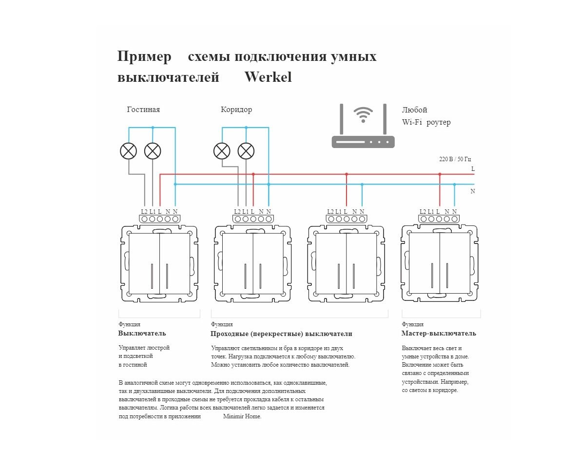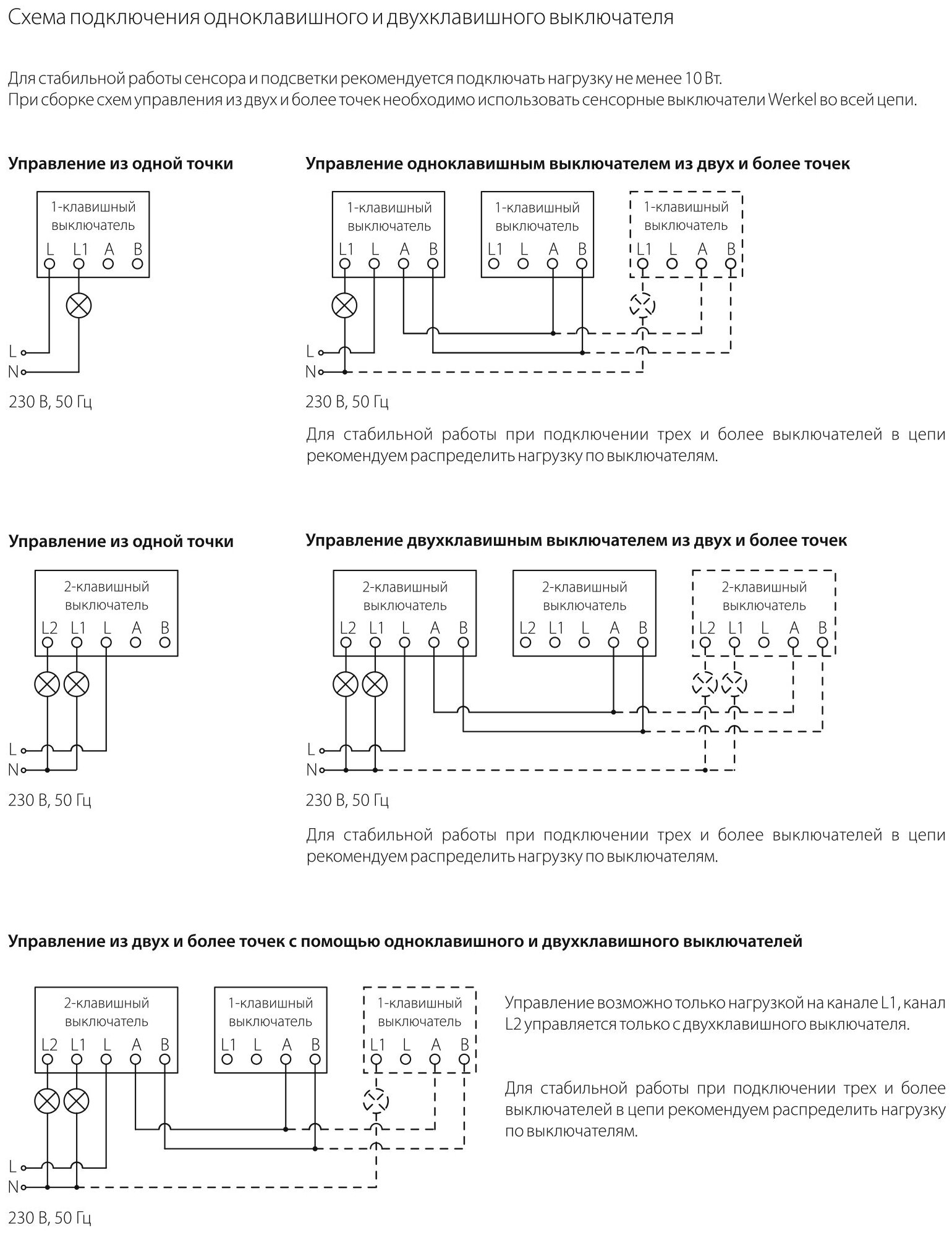 | Схема подключения выключателя | выключатель 2х1-полюсный |