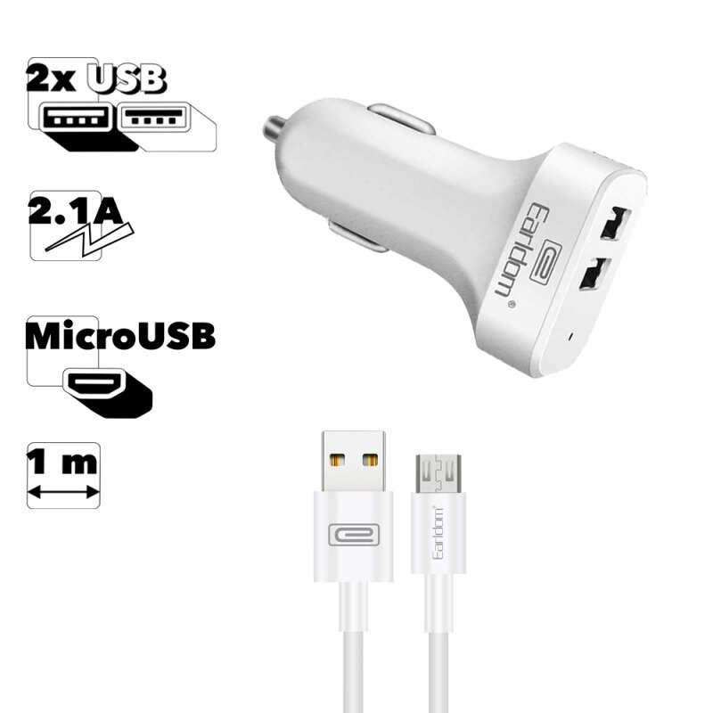 Купить Автомобильная зарядка Earldom ES-131M 2xUSB, 2.1A + кабель MicroUSB, 1м (белая)