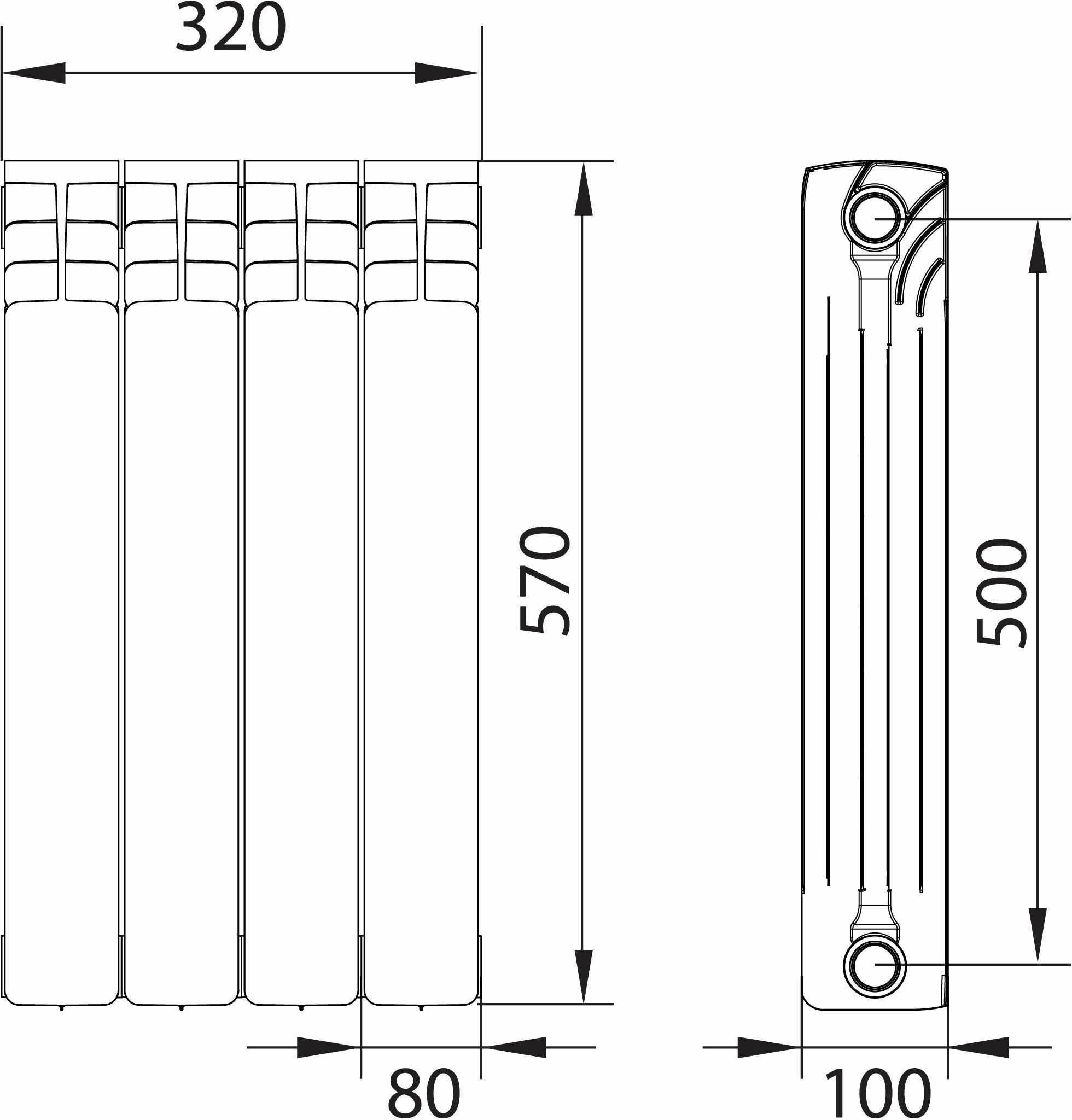 EQUATION радиатор биметаллический 1" 500/100 мм (4 секции) / EQUATION радиатор биметаллический 1" 500/100мм (4 секции) боковое подключение