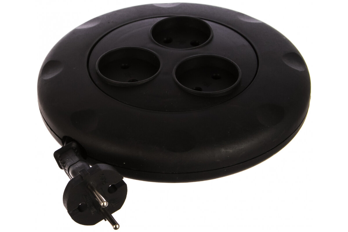 Удлинитель 3 гнезда 3 метра 10А/2,2кВт, б/з, круглый, черный (SBE-10-3-03-B)