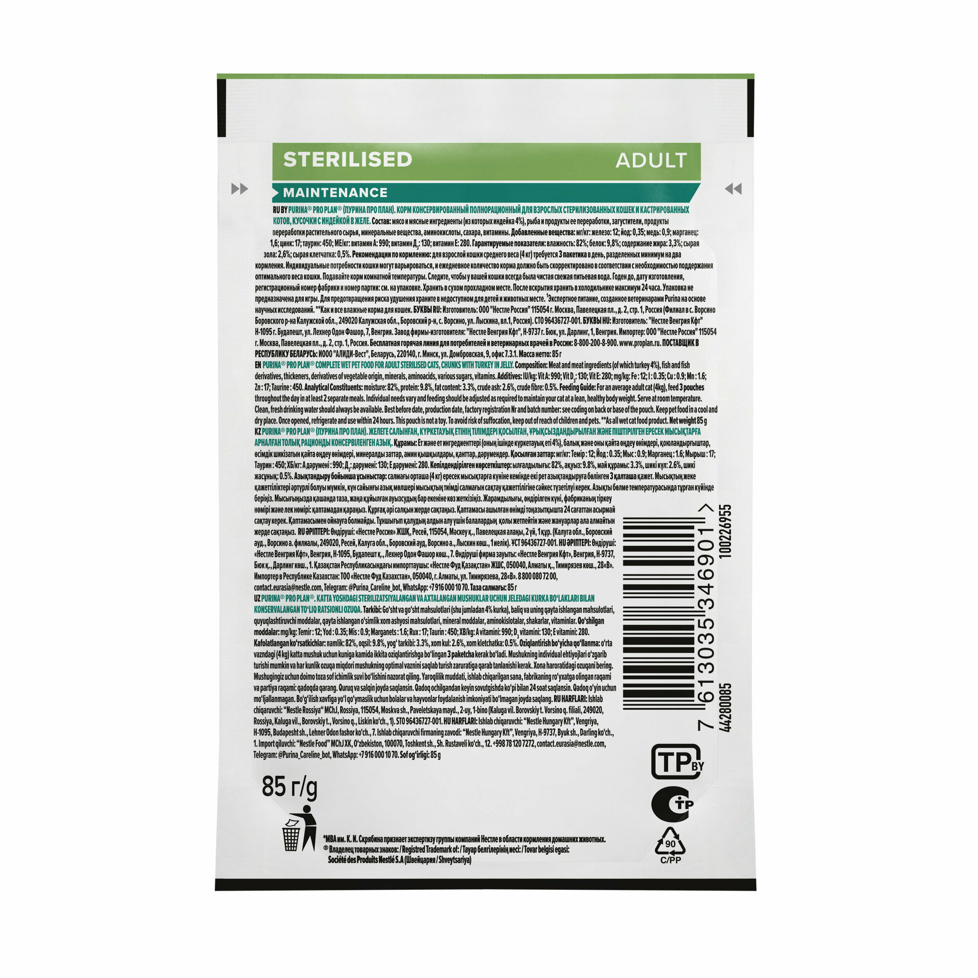 Влажный корм Pro Plan STERILISED для стерилизованных кошек и кастрированных котов, с индейкой в желе, паучи, 85г.*12шт.