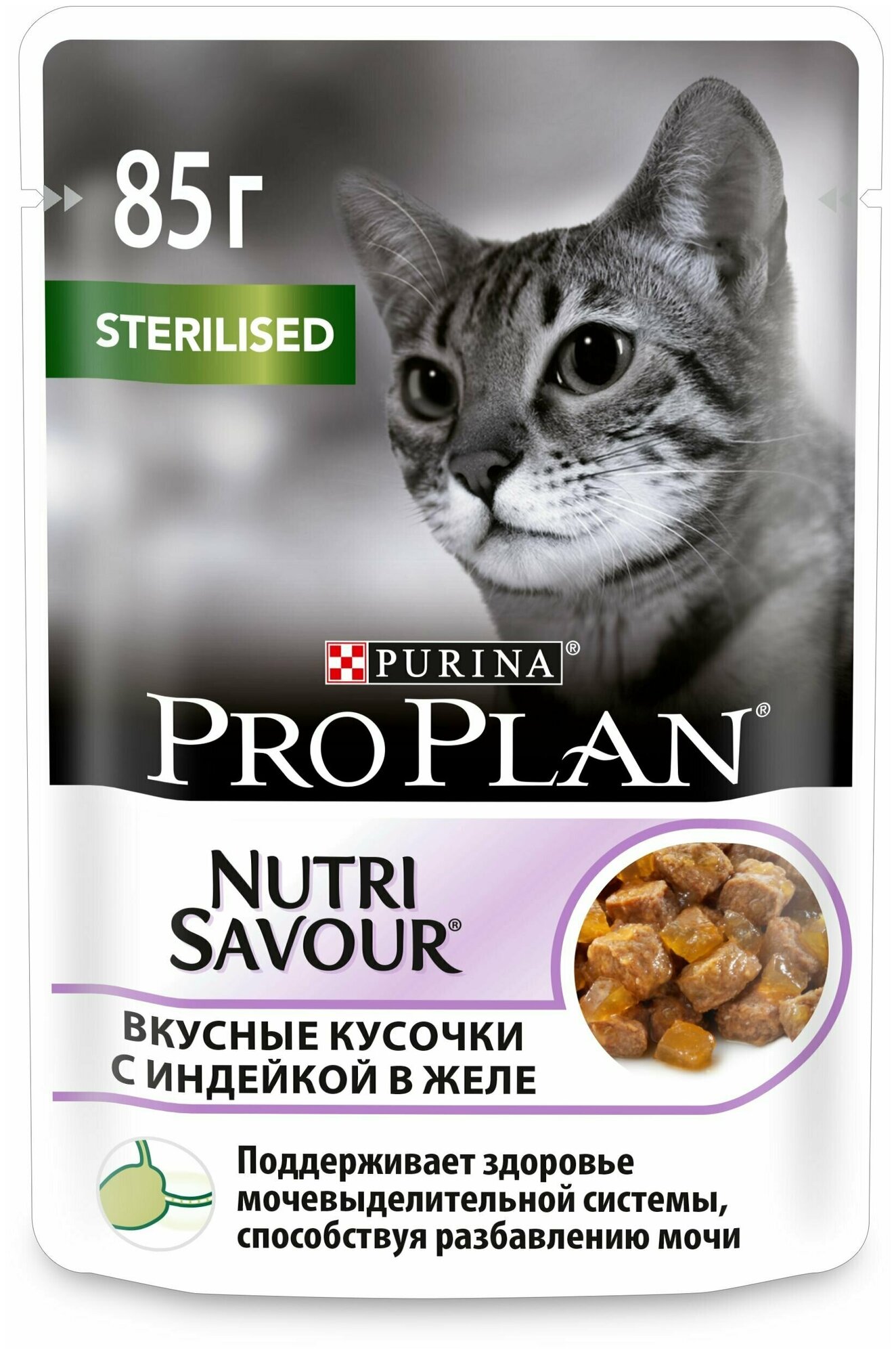 Влажный корм для стерилизованных кошек Pro Plan Nutrisavour , с индейкой 26 шт. х 85 г (кусочки в желе)
