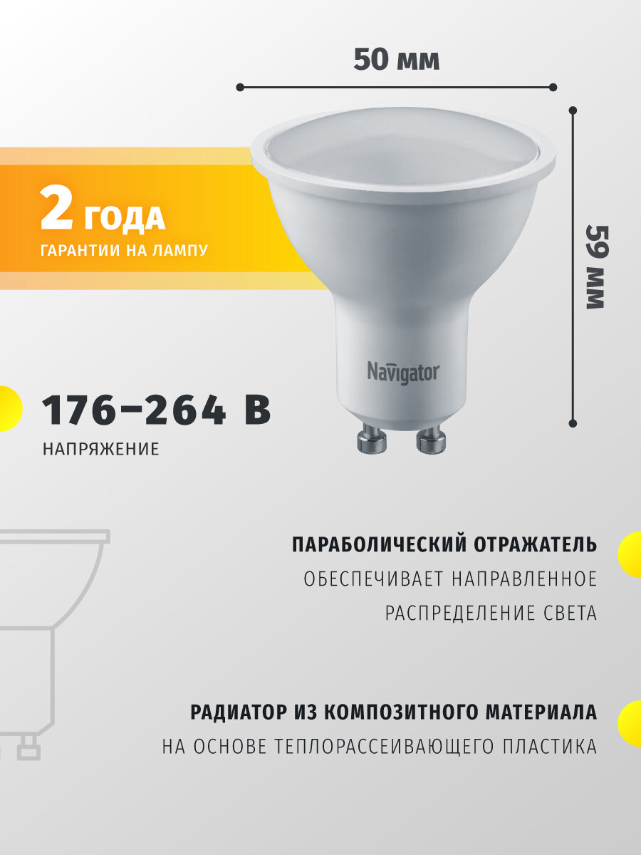 Ниже Вы можете прочитать отзывы на Лампа светодиодная Navigator 94 226, 7 Вт, цоколь GU10, теплый свет 3000К, упаковка 10 шт., ознакомится с подробными характеристиками, посмотреть интересные обзоры и фотографии на Лампа светодиодная Navigator 94 226, 7 Вт, цоколь GU10, теплый свет 3000К, упаковка 10 шт..