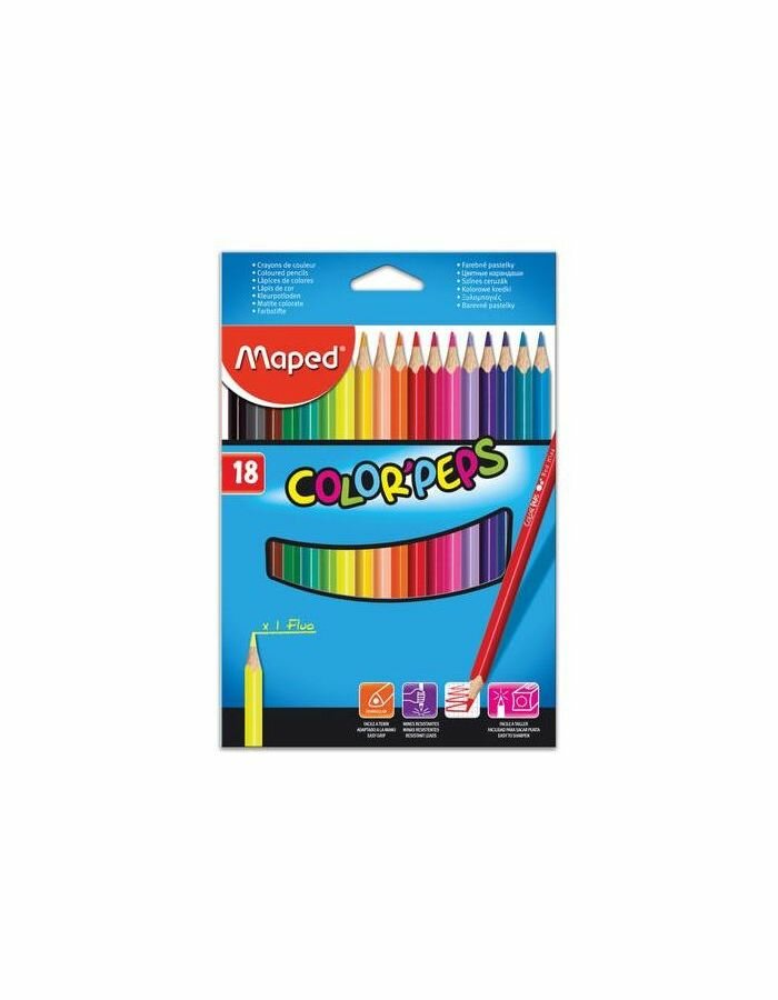 Купить Карандаши цветные MAPED (Франция) "Color Pep's", 18 цветов, трехгранные, заточенные, европодвес, 183218