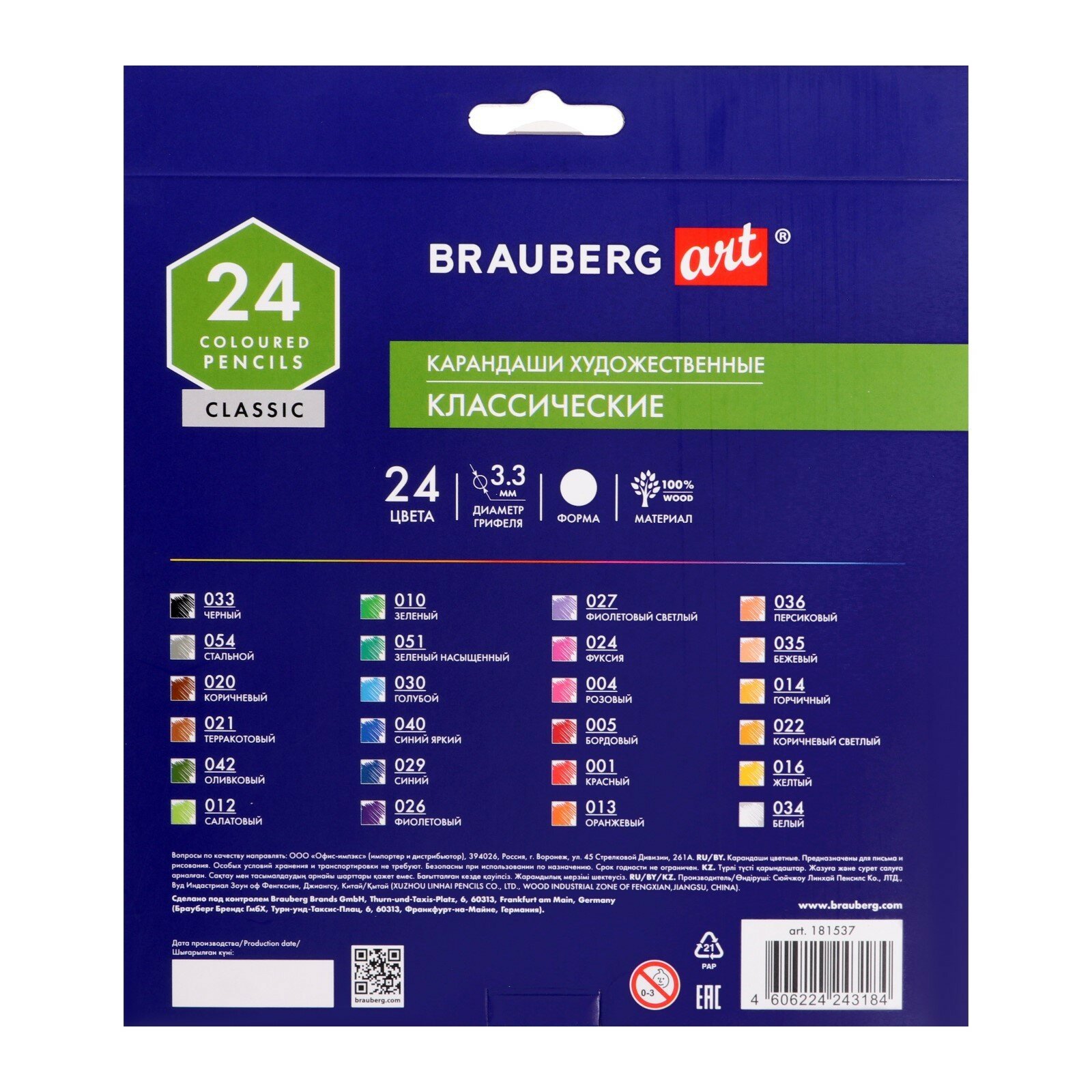 Купить Карандаши художественные цветные BRAUBERG ART CLASSIC, 24 цвета, мягкий грифель 3,3 мм, 181537 (арт. 181537)