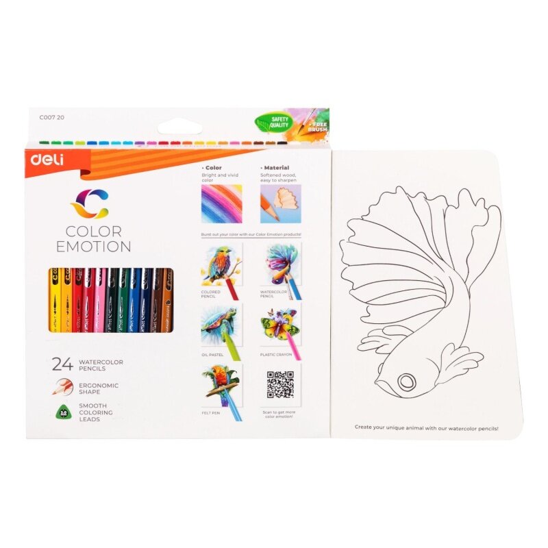 Карандаши цв. Deli EC00720 Color Emotion акварель. липа 24цв. коробка/европод. (24шт)