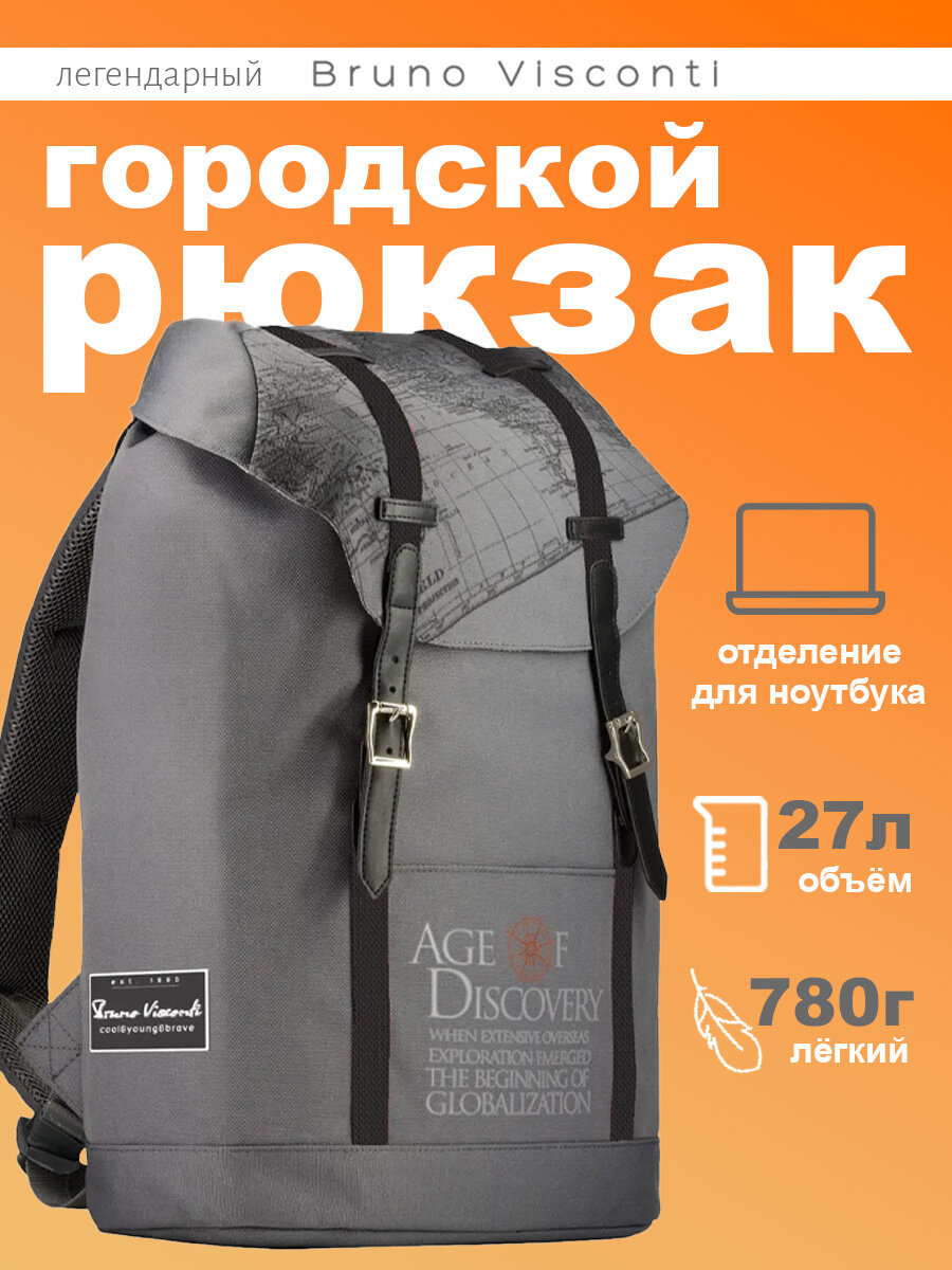 Рюкзак BrunoVisconti, городской, серый , «эпоха открытий», Арт. 12-011-015/05