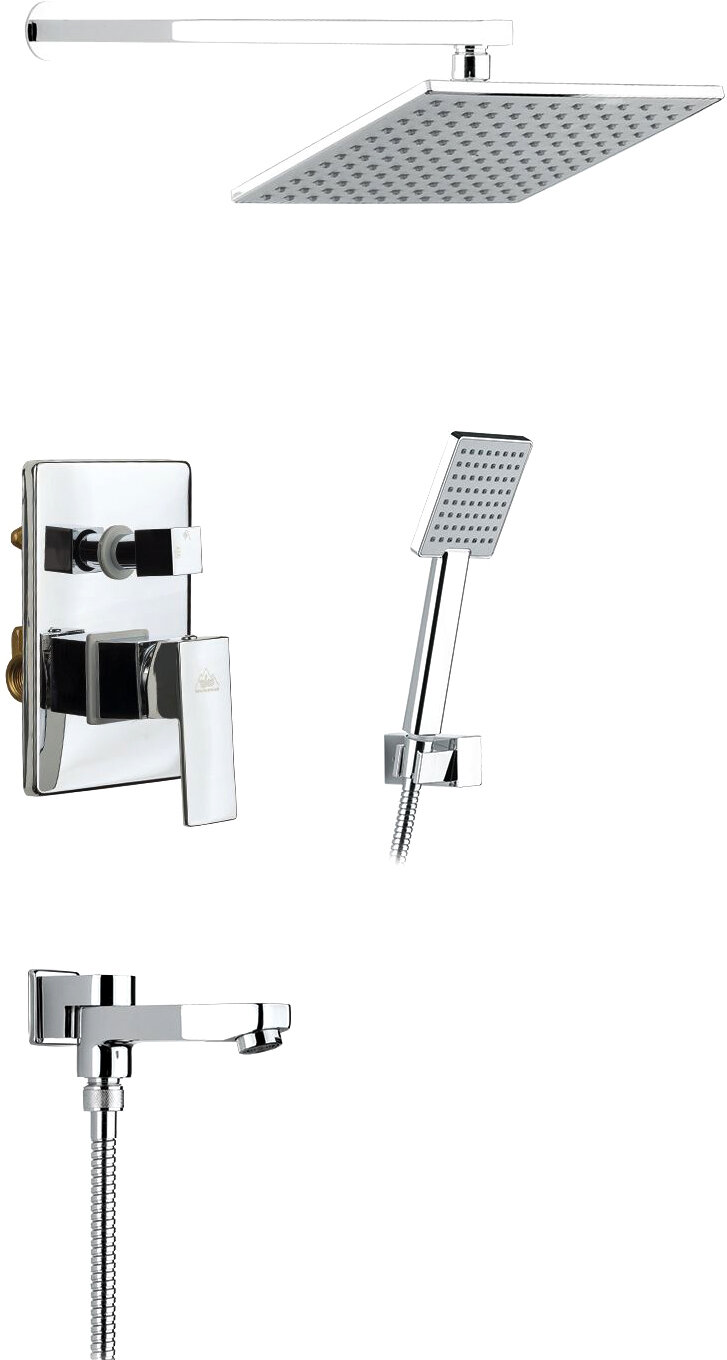 | Комплектация | Смеситель скрытого монтажа с монтажной коробкой - 1 шт. Штанга тропического душа - 1 шт. Тропический душ (пластик) - 1 шт. Ручная лейка (пластик) - 1 шт. Держатель ручной лейки (пластик) - 1 шт. Декоративная накладка смесителя - 1 шт. Ручка дивертора - 1 шт. Ручка управления смесителем - 1 шт. Шланг душа 1,5 м - 1 шт. Излив - дивертор / поворотный (латунный) - 1 шт. Инструкция - 1 шт. |