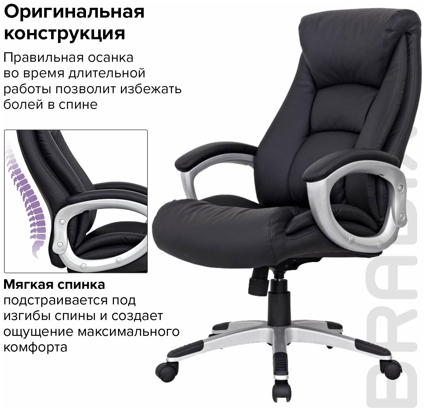 СохранитьКомпьютерное офисное кресло руководителя BRABIX Grand EX-500, с подлокотниками, натуральная кожа 530861 интересное: